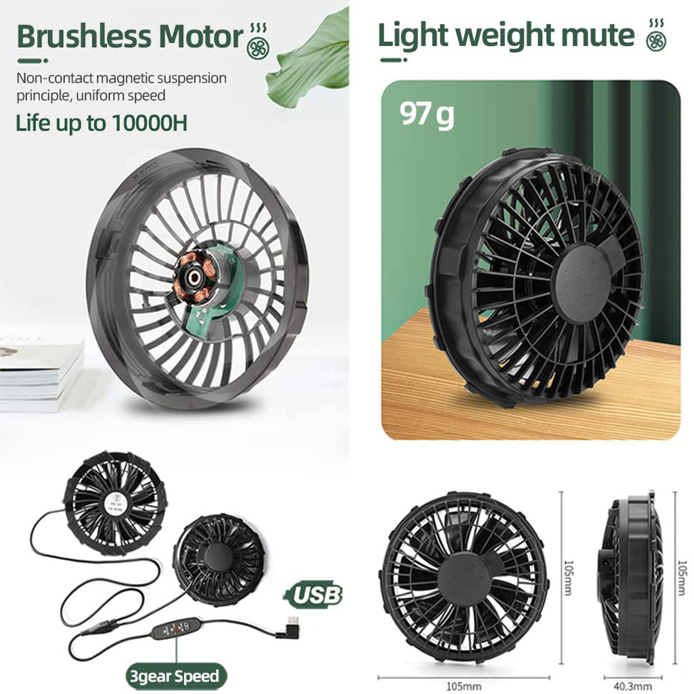 ăThree-speed adjustment of strong windăThis air-conditioning jacket fan is made of ABS+PC material, equipped with 9 fan blades, balanced power and low noise. It has three-speed wind speed adjustment of weak, medium and strong, allowing you to customize your exclusive cool experience. Note: The fan voltage must be 5V and must not be higher than 5V, otherwise the fan will be damaged. (Battery not included)