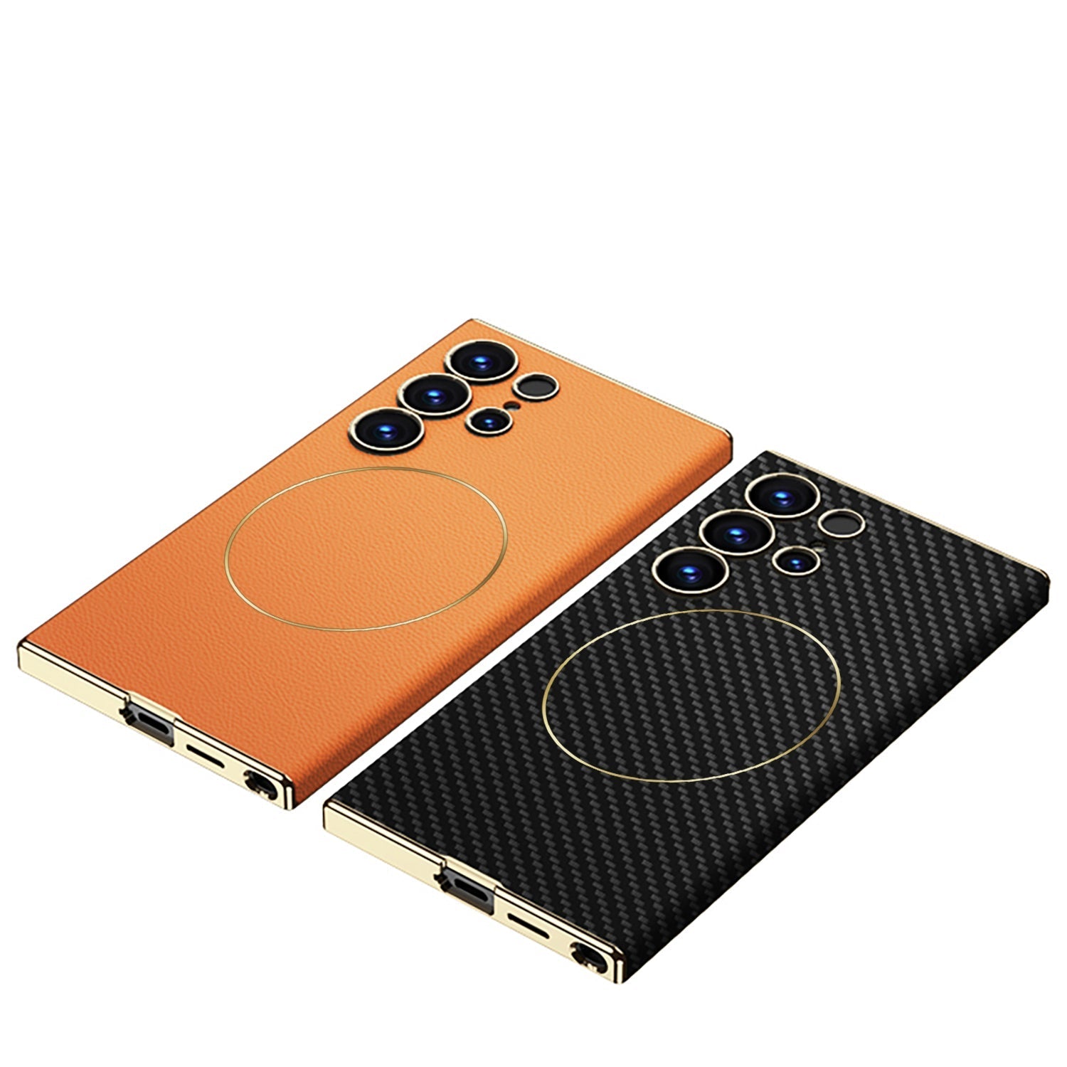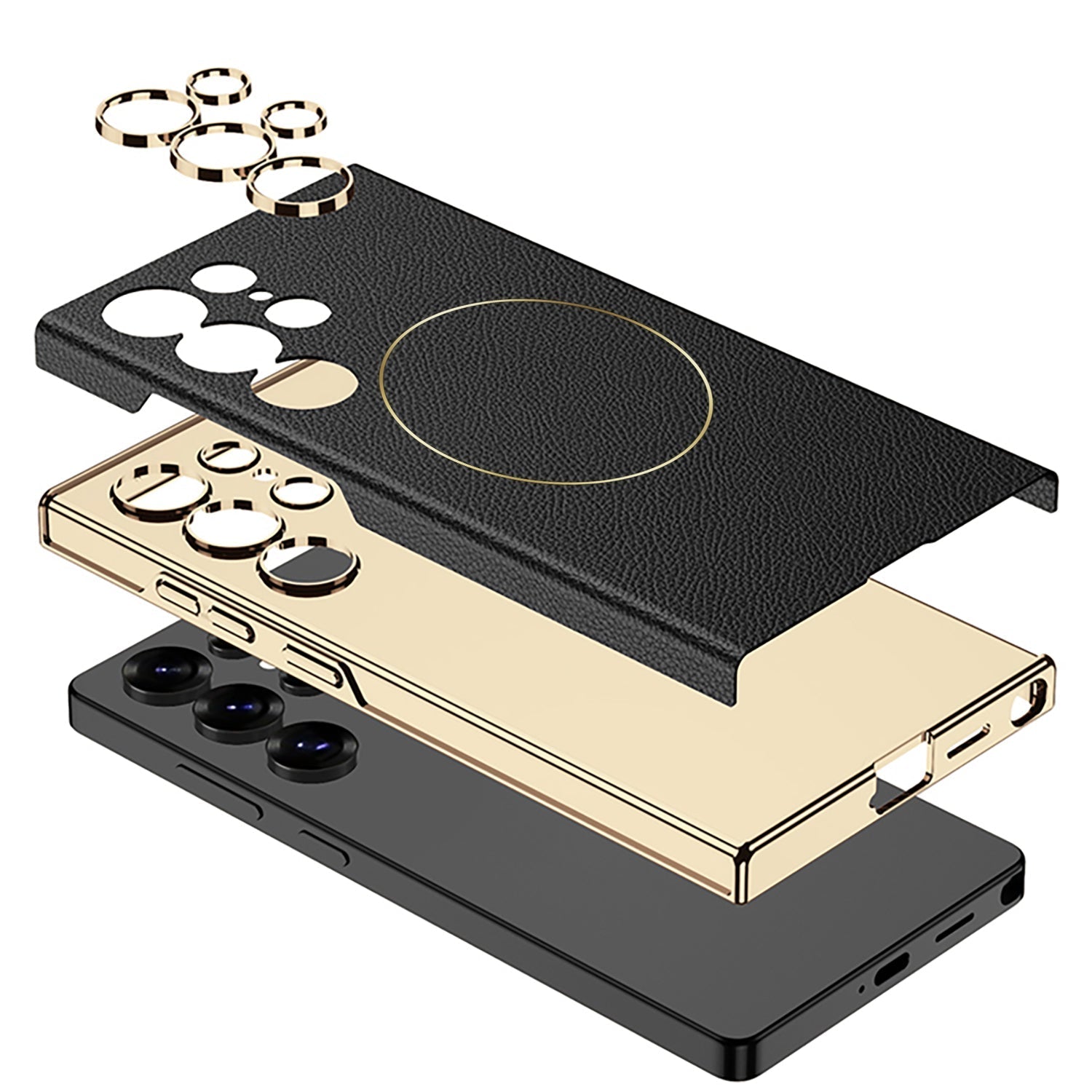 Luxurious Leather Shockproof Phone Case Support Wireless Charge For Galaxy S25 S24 S23 Ultra
