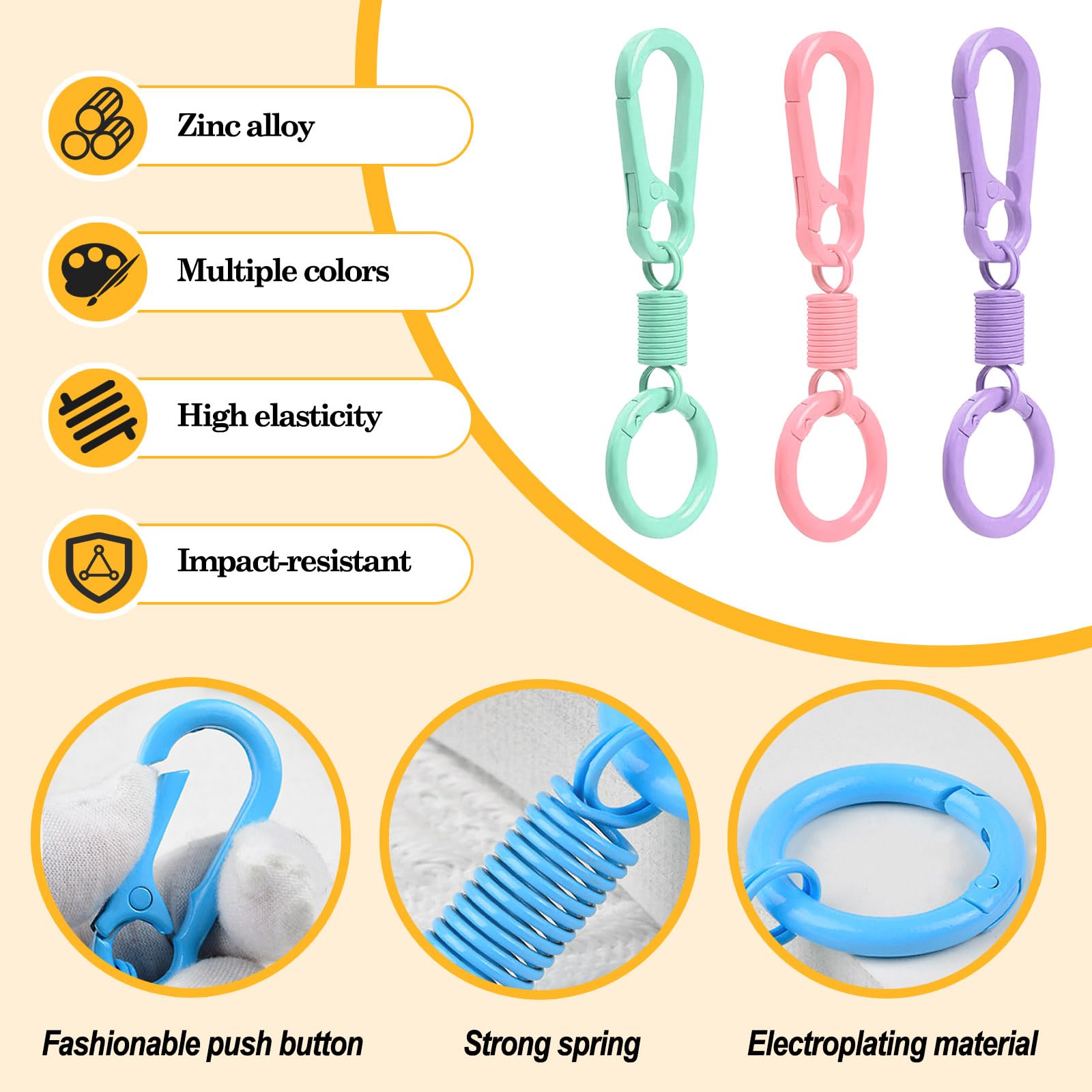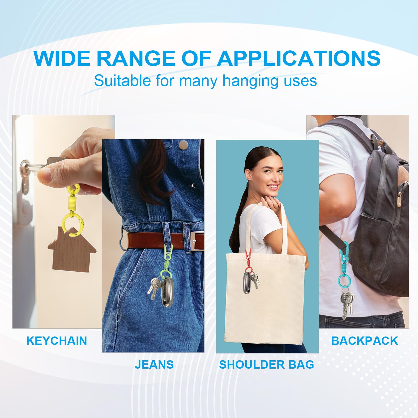 Two-way clip design: Our keychain pendant has 360° maximum flexibility to prevent tangling, easy to use and safe, not easy to open accidentally, and the safety buckle ensures that your items will not fall. The quick release O-ring allows you to easily add or remove keys. The tabs at the end allow you to slide your items through the slot. When the item is ready, fold the tabs and pinch the end caps around the item. The clip can be quickly connected to a variety of fixing points.